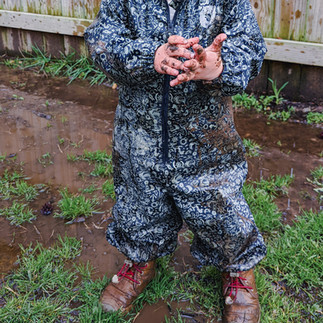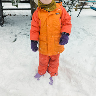 Waterproof and lined options are needed for boots and mittens in the colder months. For shoes this could look like snow boots, lined rain boots, or waterproof covers such as Stonz booties. For mittens this could look like wool or cotton mittens with a waterproof cover or wool mittens alone.